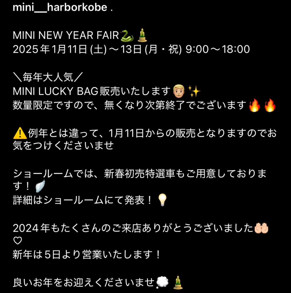 ストーリーでMINI福袋準備中の情報が流れてきましたので、販売はされそうです。