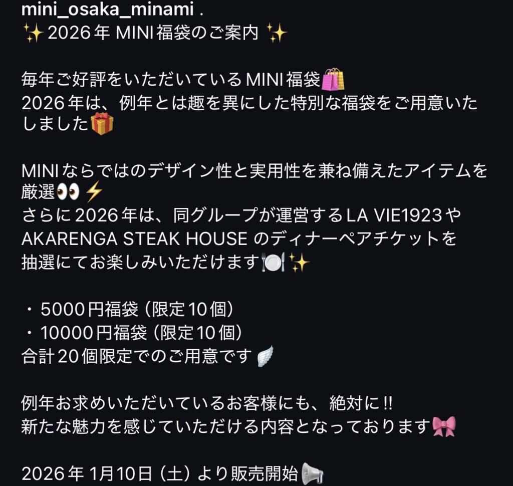 2026年1月10日 9:00~ MINI福袋販売開始