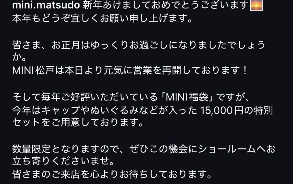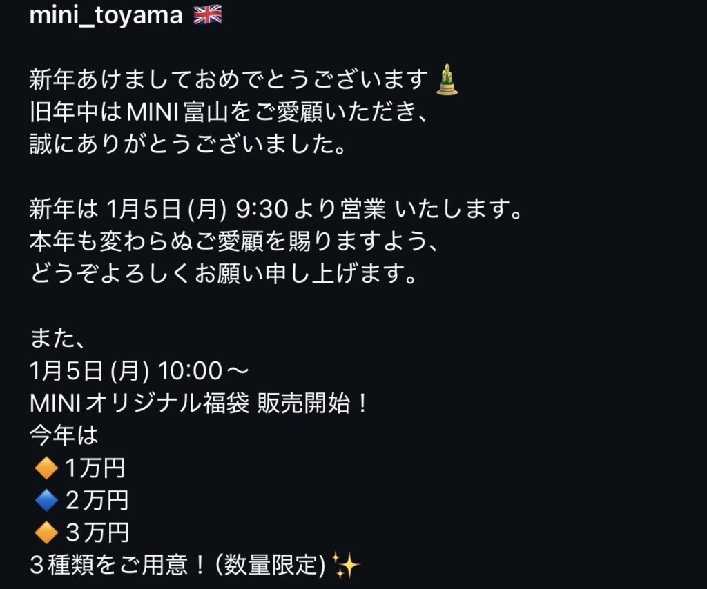2026年1月5日 9:30~ MINI福袋販売開始