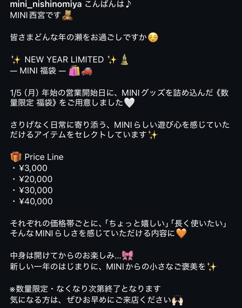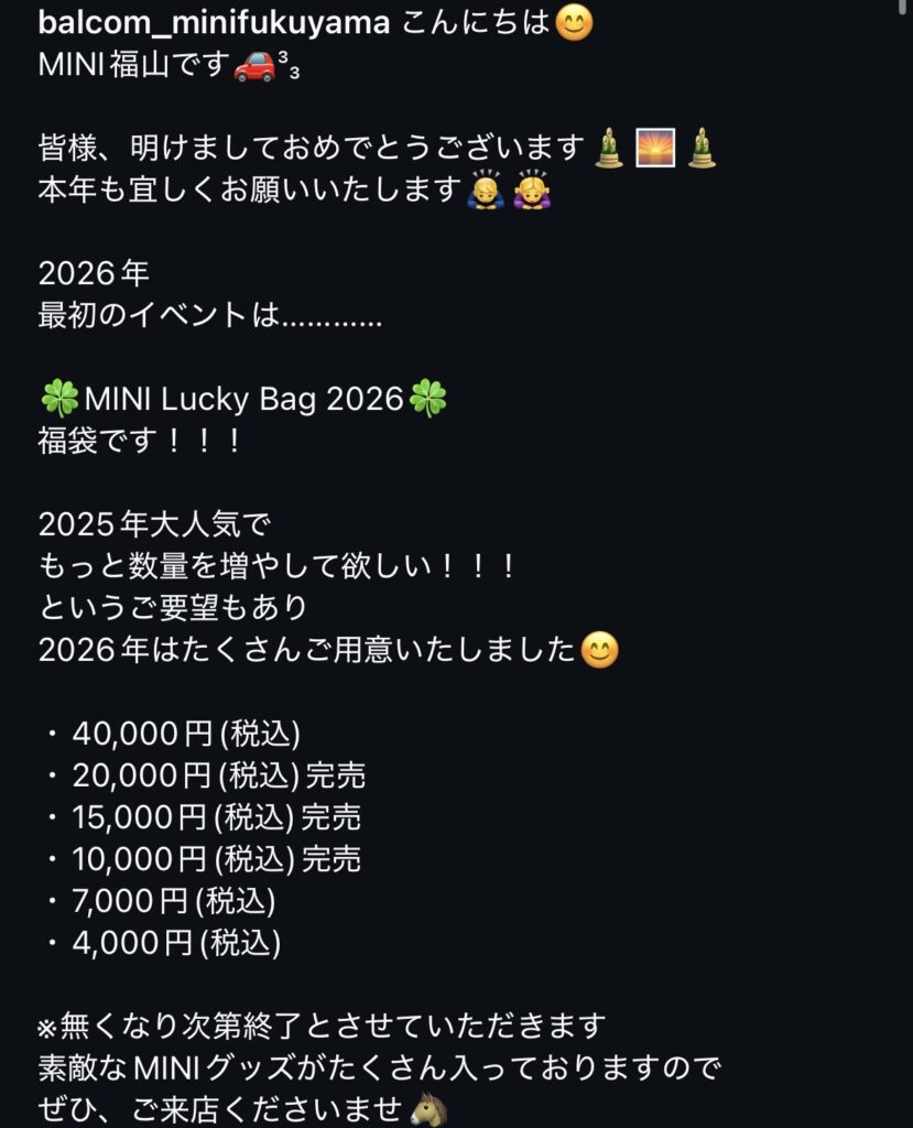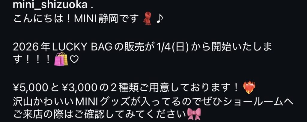 2026年1月7日 9:30~ MINI福袋販売開始