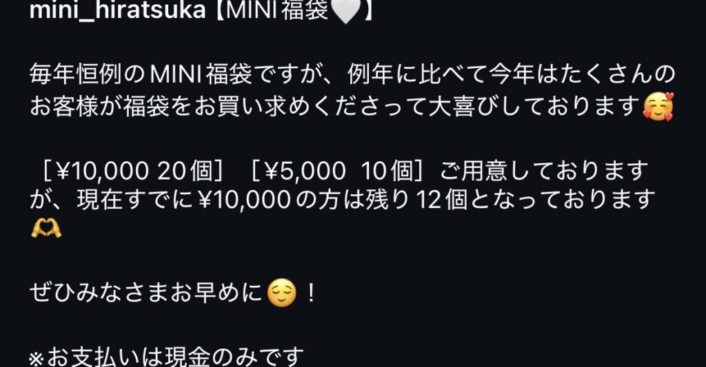 2025年1月7日 10:00~ MINI福袋販売開始